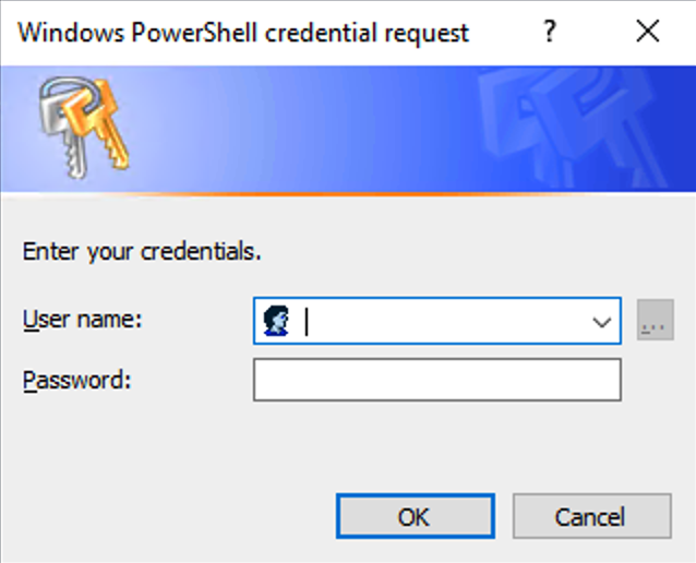 Pressing enter will make a Windows Get-Credential dialog appear so you can enter the desired credentials.